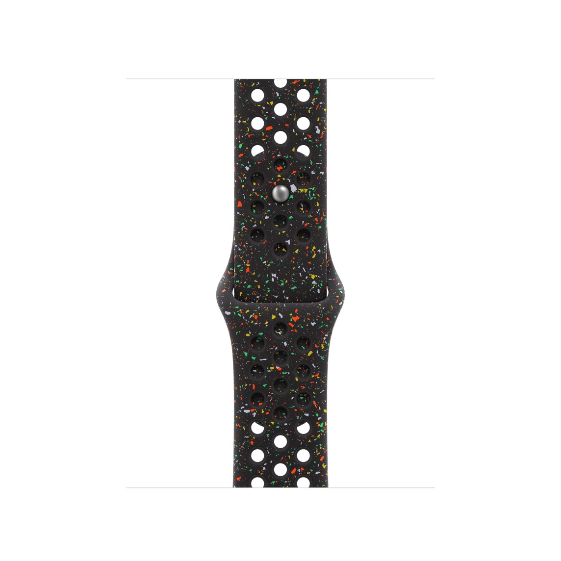 Nike Sportsremmen har formpressede huller, så huden kan ånde. Den er solid og stærk – og overraskende blød. Designets farverige flager placeres i et tilfældigt mønster, og derfor er hver rem unik. Det bløde og kompakte materiale sidder elegant omkring dit håndled og føles behageligt mod huden. Stiften i stiftlukningen er lavet i aluminium, har Run Swoosh-logoet nænsomt indgraveret og har en flot mat finish.